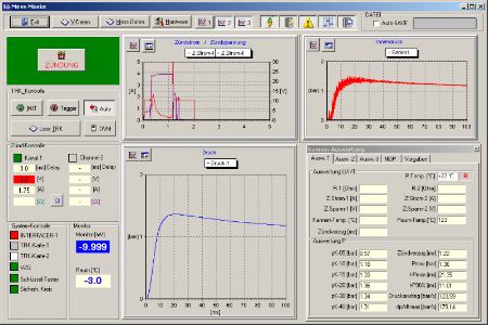 The release of a production lot is essentially based on the results of these can tests. Since because of the destroying examination a test expiry cannot be repeated with the same test object, the possibility must be given to be able to take all decisions also visually from the recorded data for the QS employee. To this are integrated into the software tools, which supervise the functions of the hardware, carry out statistical evaluations, generate graphic sum representations and allow an export of the data to strange programs.